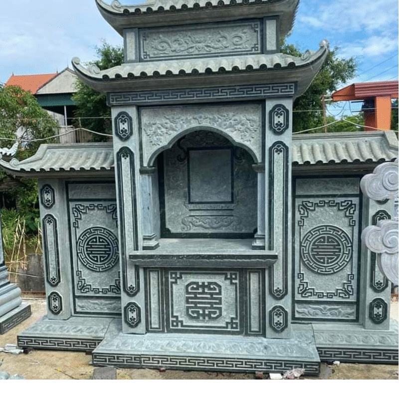 Vị trí lăng thờ thường được đặt chính giữa trong cùng của khu lăng mộ. Đây là hạng phục quan trọng thứ hai không thể thiếu khi thiết kế thi công lăng mộ đá. Cũng tương tự như mộ đá, lăng mộ bằng đá cũng sẽ có nhiều thiết kế khác nhau như lăng mộ 2 mái, 3 mái…